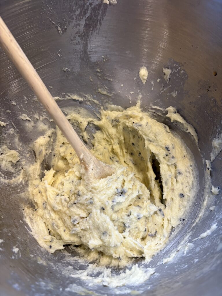 • These cookies can be mixed by hand or with a mixer. If using a stand mixer, add the paddle attachment.