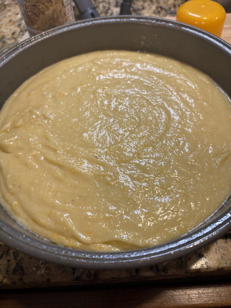 - Pour the batter into the prepared pan.