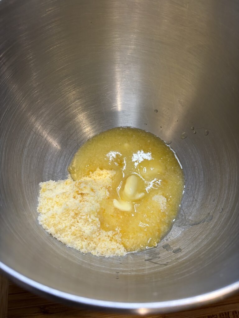 - Add the butter and orange zest/sugar mixture to the bowl of a stand mixer fitted with a paddle attachment. You can mix this cake by hand if necessary.