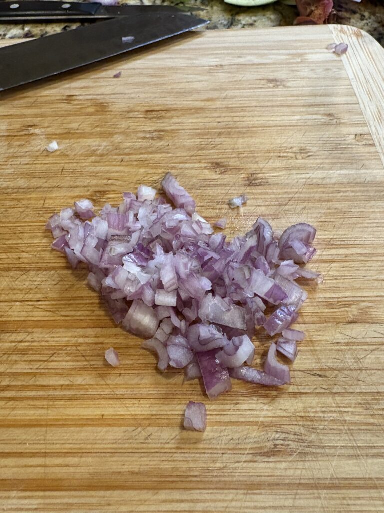 4. Prepare the other ingredients while the squash cooks. Dice the shallot and set aside.