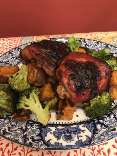 Easy Sheet Pan BBQ Chicken Thighs with Sweet Potatoes